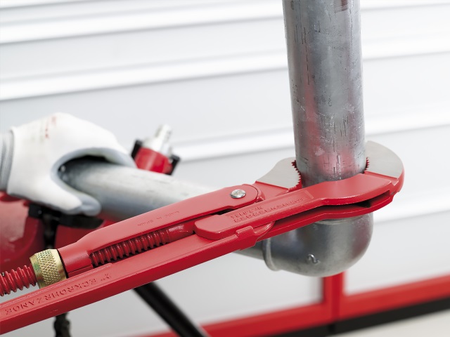 Сожмите рукоятки: Слегка сожмите рукоятки — ключ "укусит" трубу. Зубья должны надежно врезаться в металл.