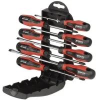 Жало из хромванадиевой стали. Черный магнитный наконечник, защита от коррозии. Отвертка комфортно лежит в ладони, обеспечивает неутомительную работу. Эргономичная нескользящая двухкомпонентная рукоятка увеличенного размера.