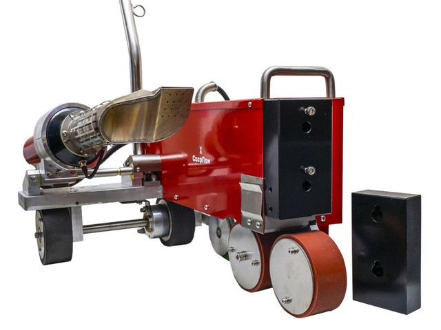 Автоматический сварочный аппарат СварПом СП41 применяются для сварки внахлёст полимерных гидроизолирующих покрытий, а также кровельных мембран из ПВХ, ТПО, синтетического каучука и других гидроизолирующих материалов.